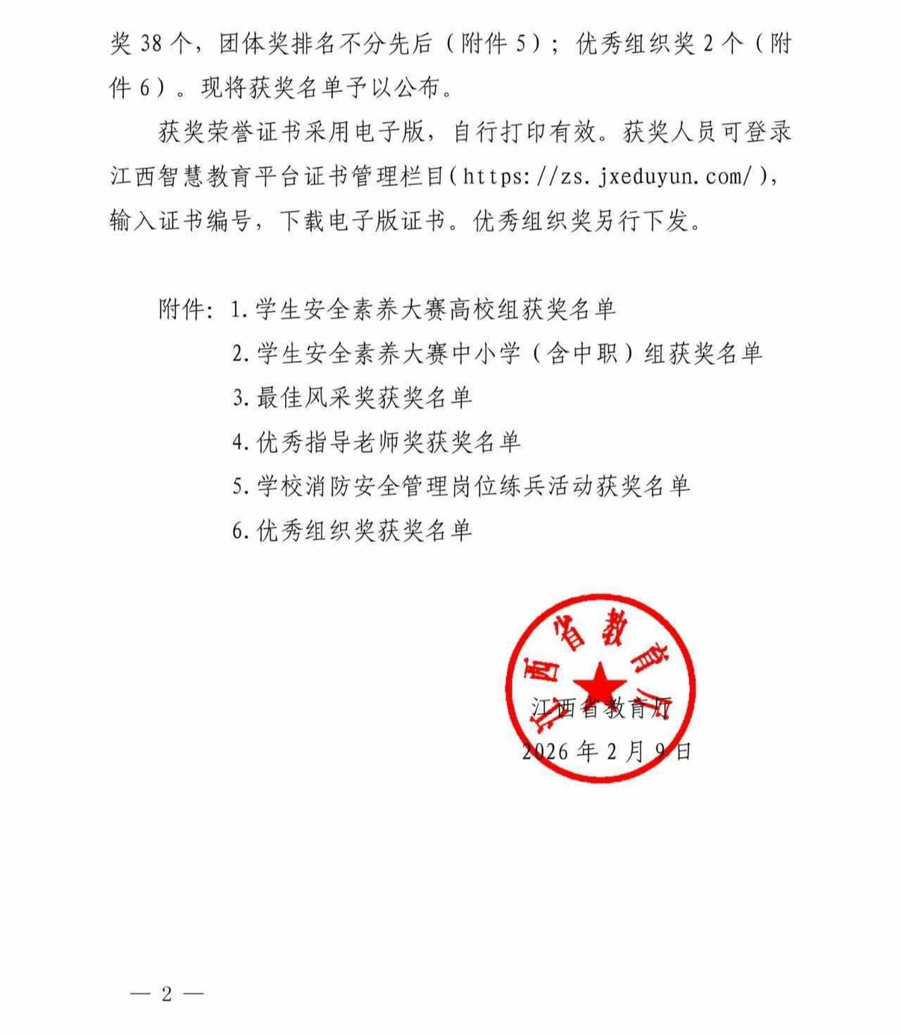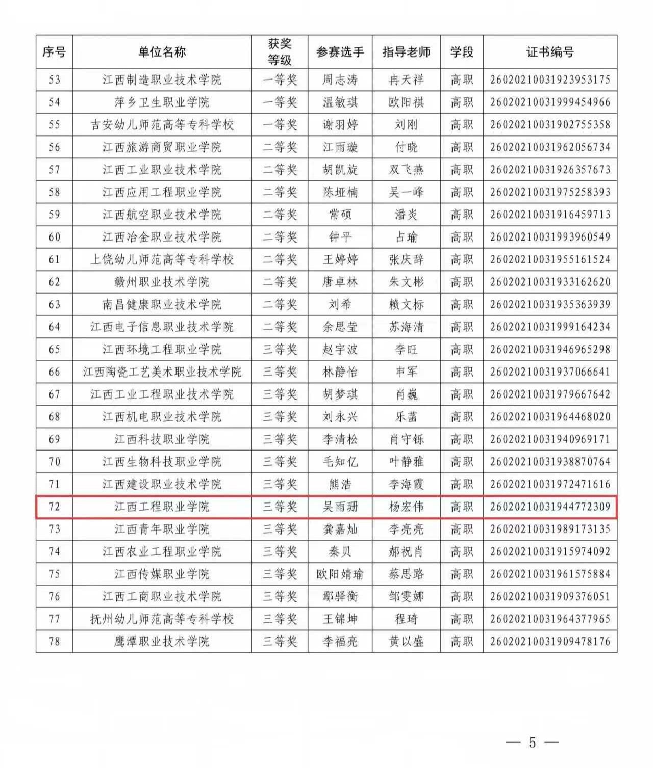 近日,江西省教育厅公布了全省首届教育系统安全素养大赛获奖名单。我校杨宏伟老师指导的吴雨珊同学在学生安全素养大赛高校组中表现出色,荣获三等奖。