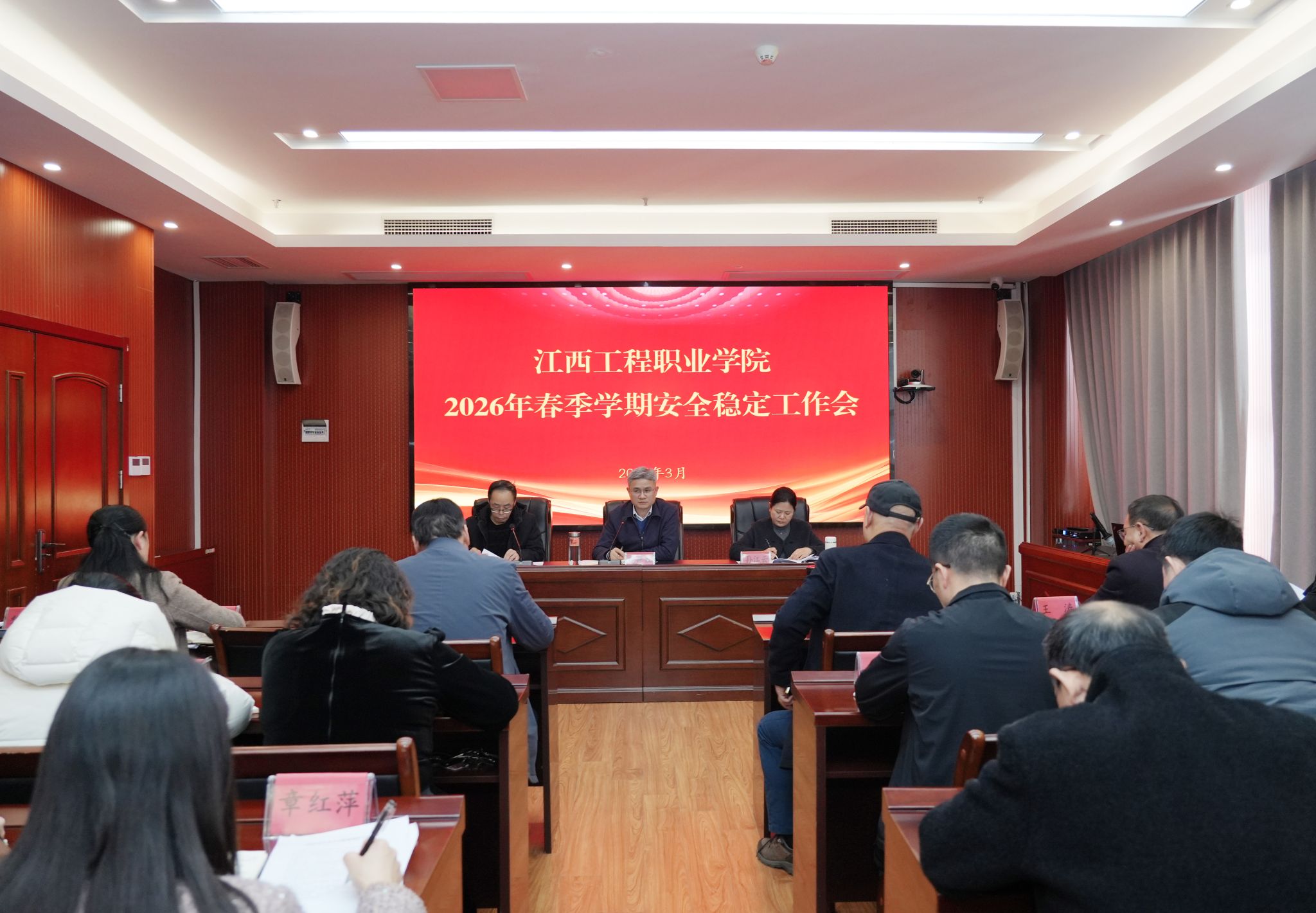 3月6日,学校召开2026年春季学期安全稳定工作会议,传达学习上级关于安全稳定工作文件精神,全面部署新学期校园安全稳定工作。学校党委书记花严红主持会议,党委副书记、校长孙江云等校领导出席会议。